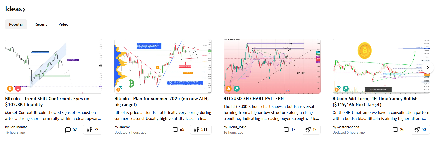 - 코인뿐 아니라 주식, ETF, 금리, 외환 등 다양한 자산 차트 가능