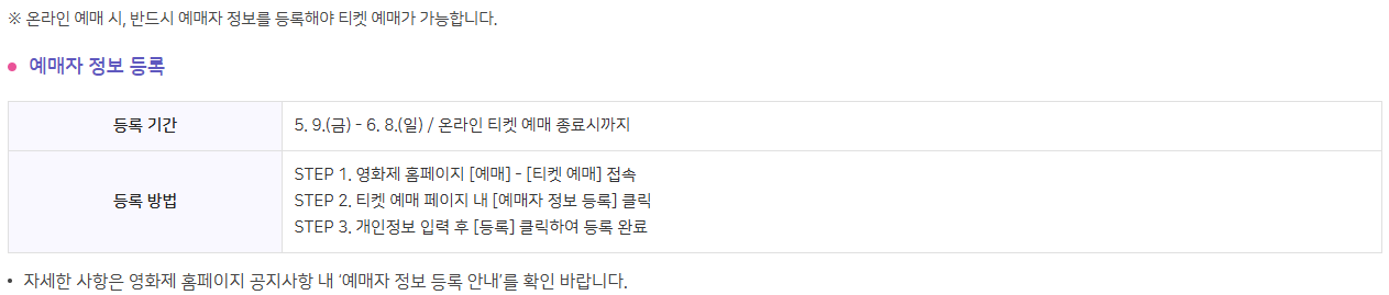 - 빠른 예약 필수 (영화제 기간에는 조기 마감됨)